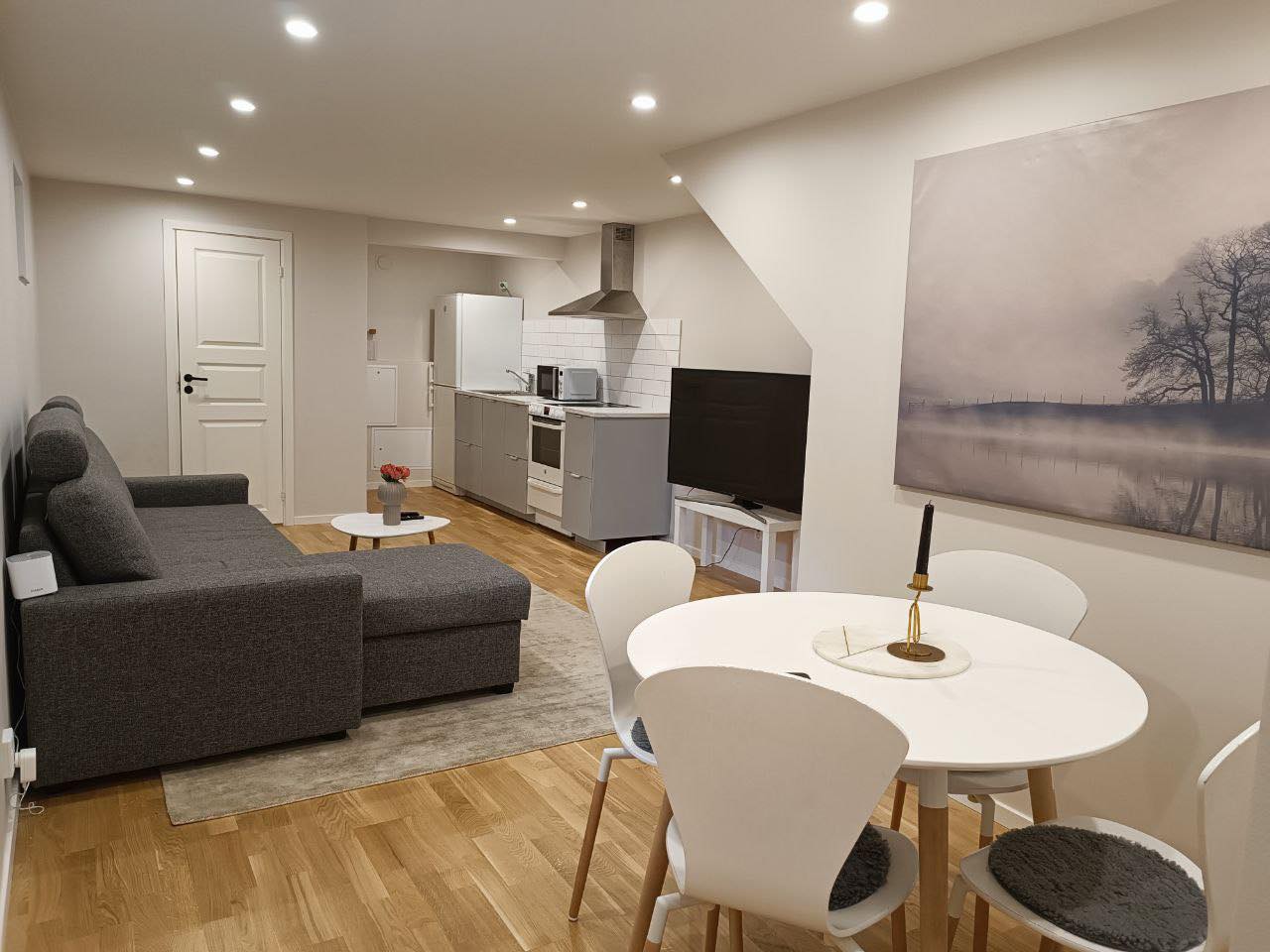 Välkommen till en ljus och fräsch lägenhet som totalrenoverades under januari 2022. Lägenheten ligger på nedre plan av en villa med egen entré. Öppen planlösning mellan kök och vardagsrum samt separat sovrum. Köket är fulltutrustad och i badrummet finns kombinerat tvätt och torktumlare. (Parkering finns) Vi är en familj på fyra personer (2 vuxna och 2 små barn) som bor på övervåningen. Ni har en separat ingång till lägenheten. Boendet har ett sovrum och passar bäst för en till två personer, med en bäddsoffa i vardagsrummet. Vi söker en hyresgäst för långsiktigt boende, helst minst ett års kont...