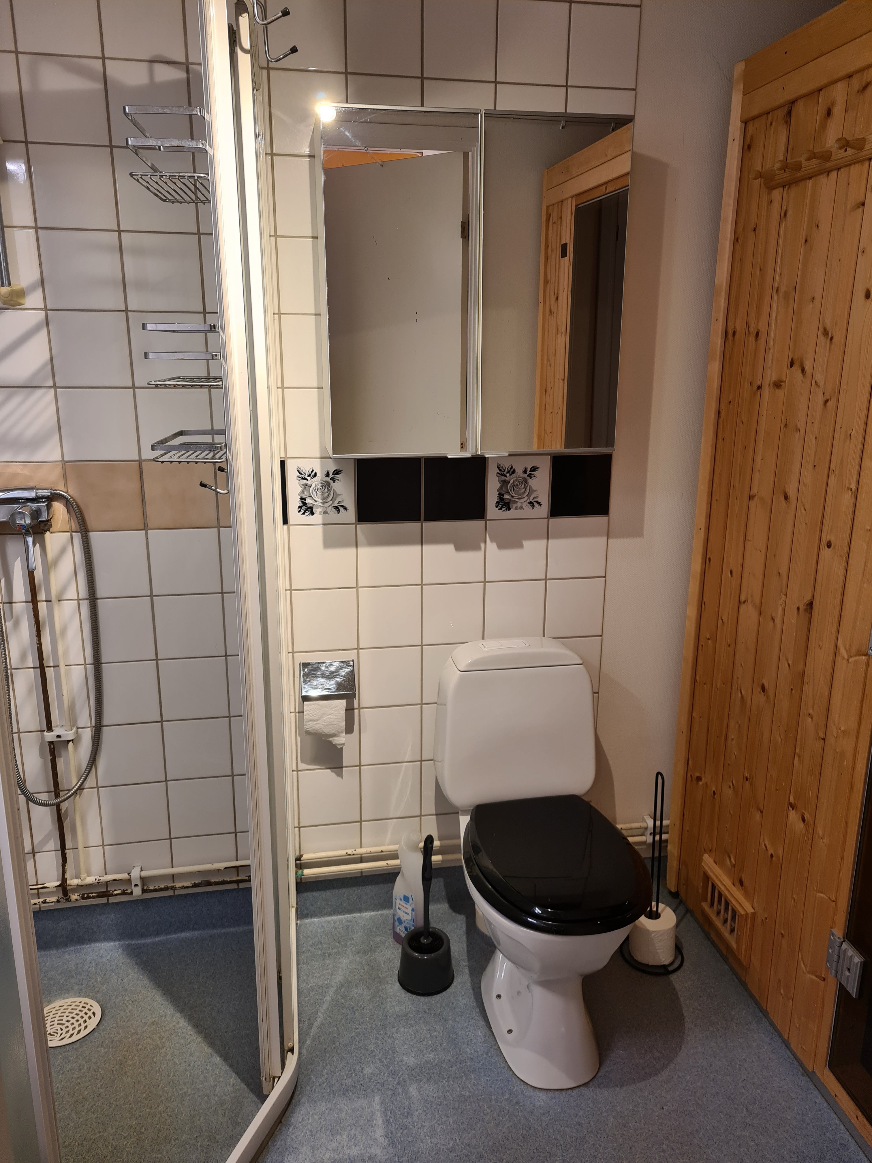 Ett badrum med dusch.