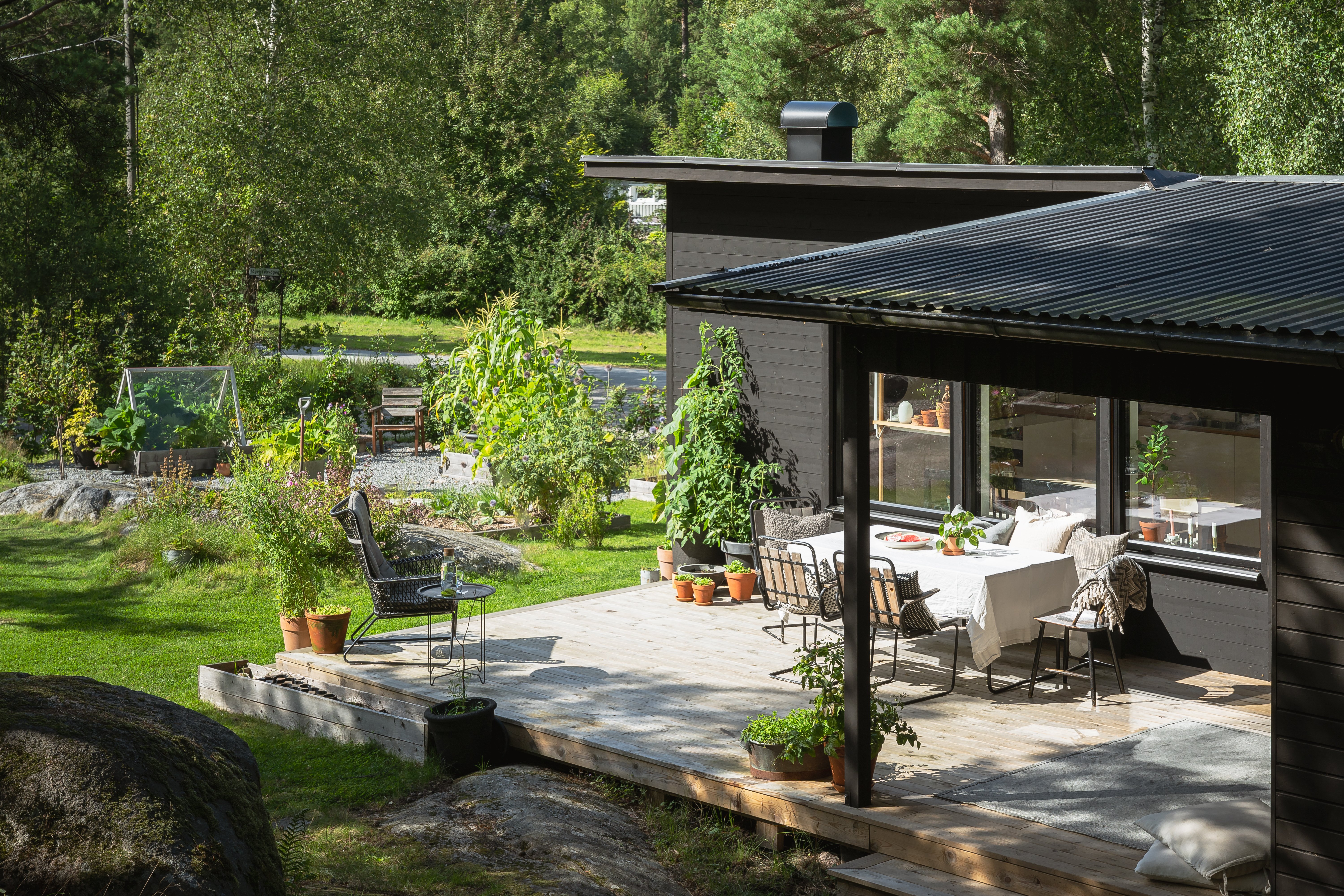 Tomten är idag välskött och har en del som är uppodlad med odlingslådor och markbäddar. Här kan man skörda sin egen majs, tomater och gurka, sen odals även blomster som prunkar vackert i trädgården.