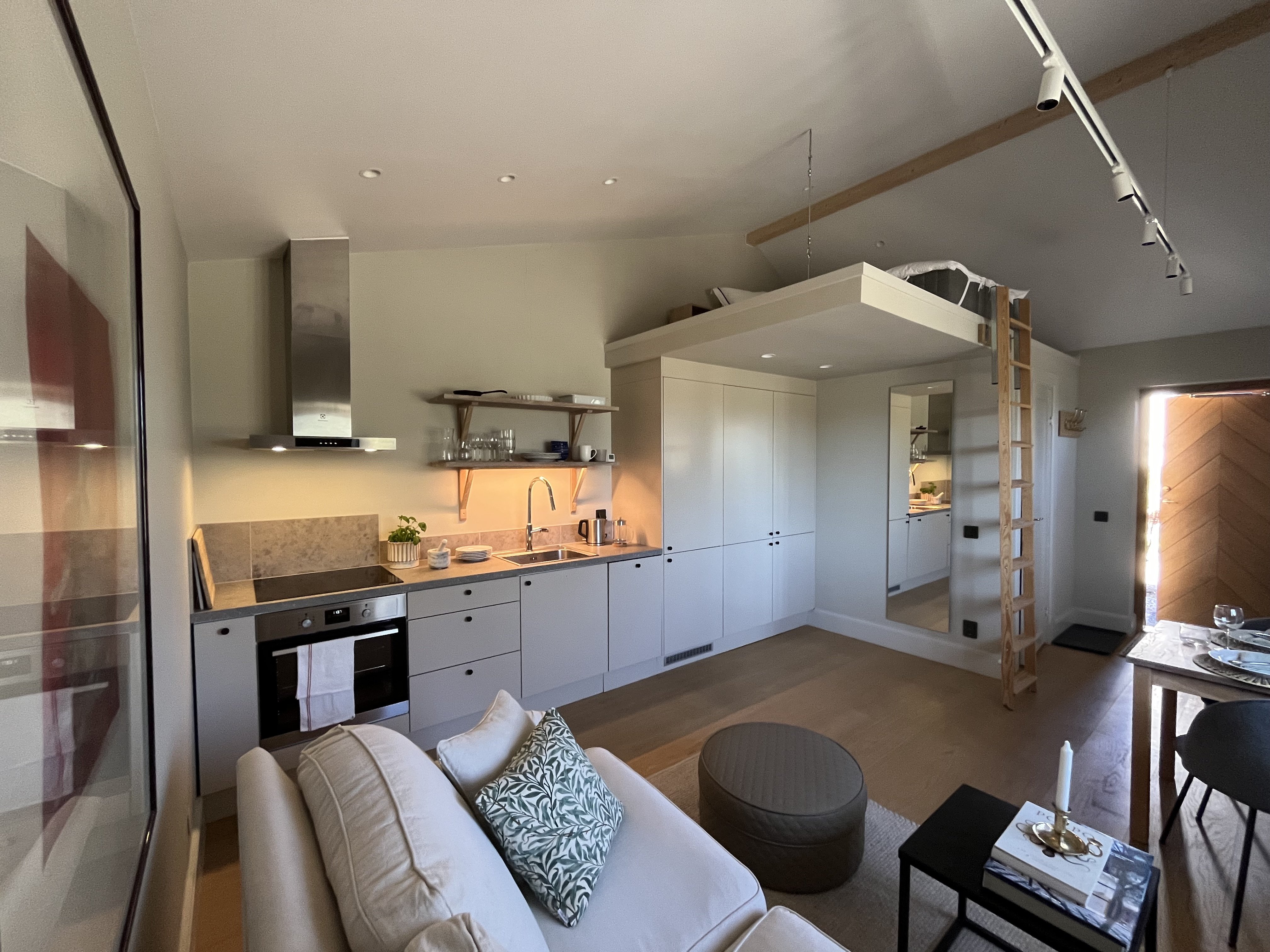 Loft som nås från en utdragbar loftstege.