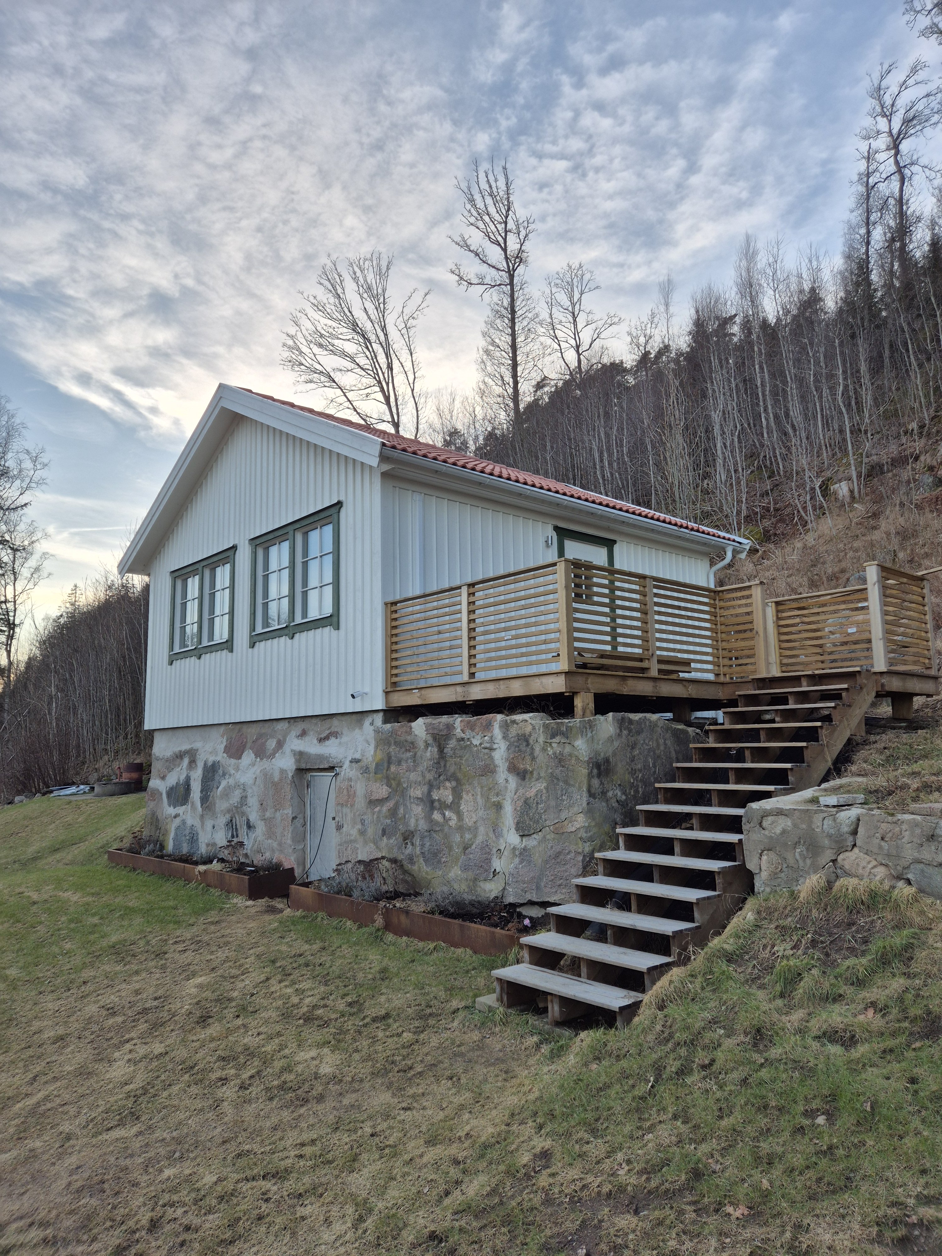 Stuga som precis genomgått en totalrenovering. Lugnt läge med utsikt över Göta älv. Öppen planlösning med högt i tak i kombinerat kök/vardagsrum. Kök utrustat med kyl/frys, mikrovågsugn, induktionshäll & ugn. Allt är helt nytt. Hallen inredd med stor garderob för bästa möjliga förvaring. Ytterdörr utrustad med YALE lås (kodlås). Badrum med golvvärme. Dusch, kombinerad tvättmaskin / torktumlare & förvaringsskåp. Allt helt nytt. Sovrum 1. Byggt med garderober längs med ena väggen för att maximera förvaring. Storleken på rummet är anpassat för att få plats med en 180 cm bred säng. Loft. Lägre tak...