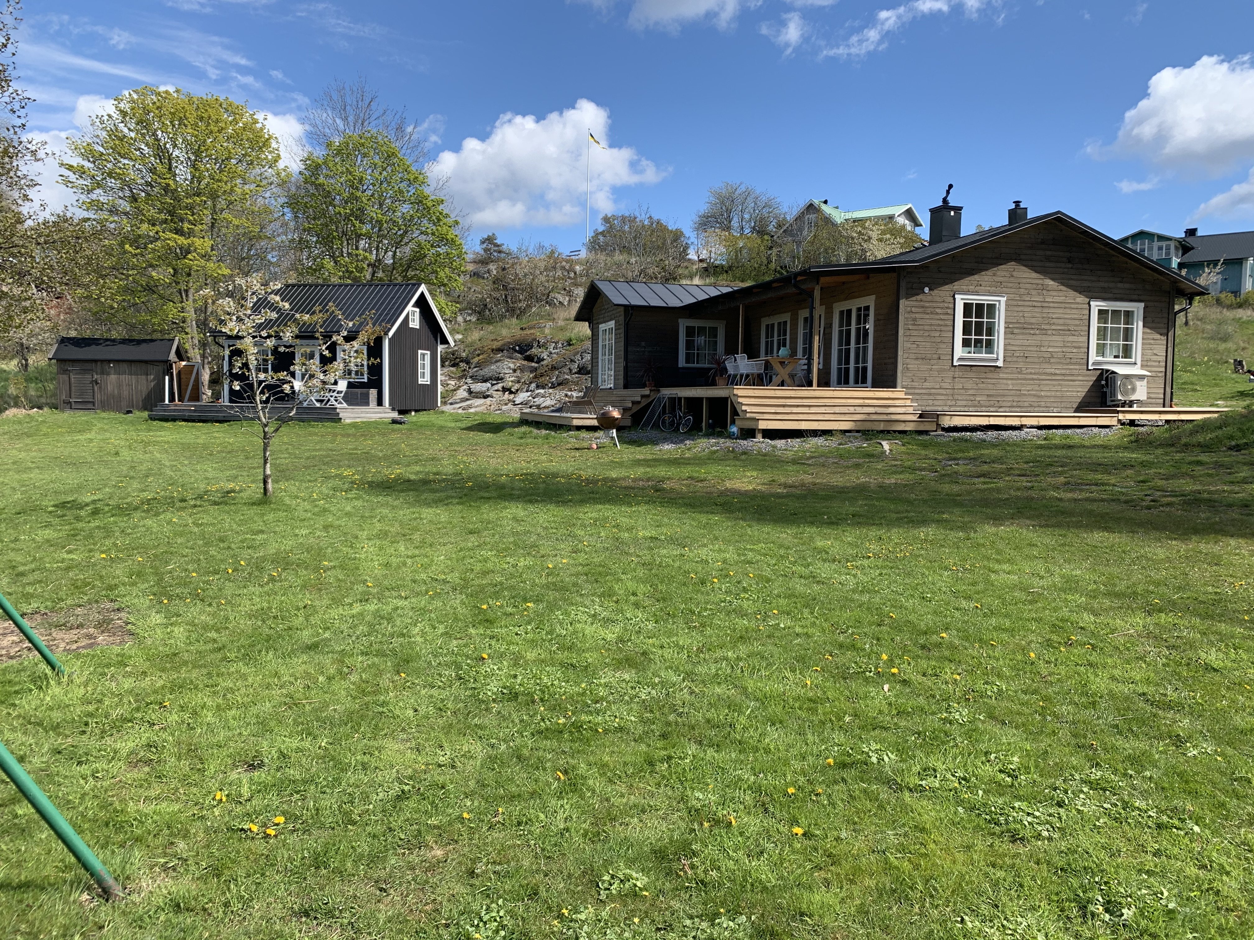 Perfekt för par eller en liten familj som vill prova livet i skärgården. Huset om 120 kvm har ett ljust, luftigt allrum med öppen planlösning, tre sovrum, två badrum, öppen spis och stora altandörrar som suddar ut gränsen mellan ute och inne. Trädgård med sjöglimt, och fin standard rakt igenom.