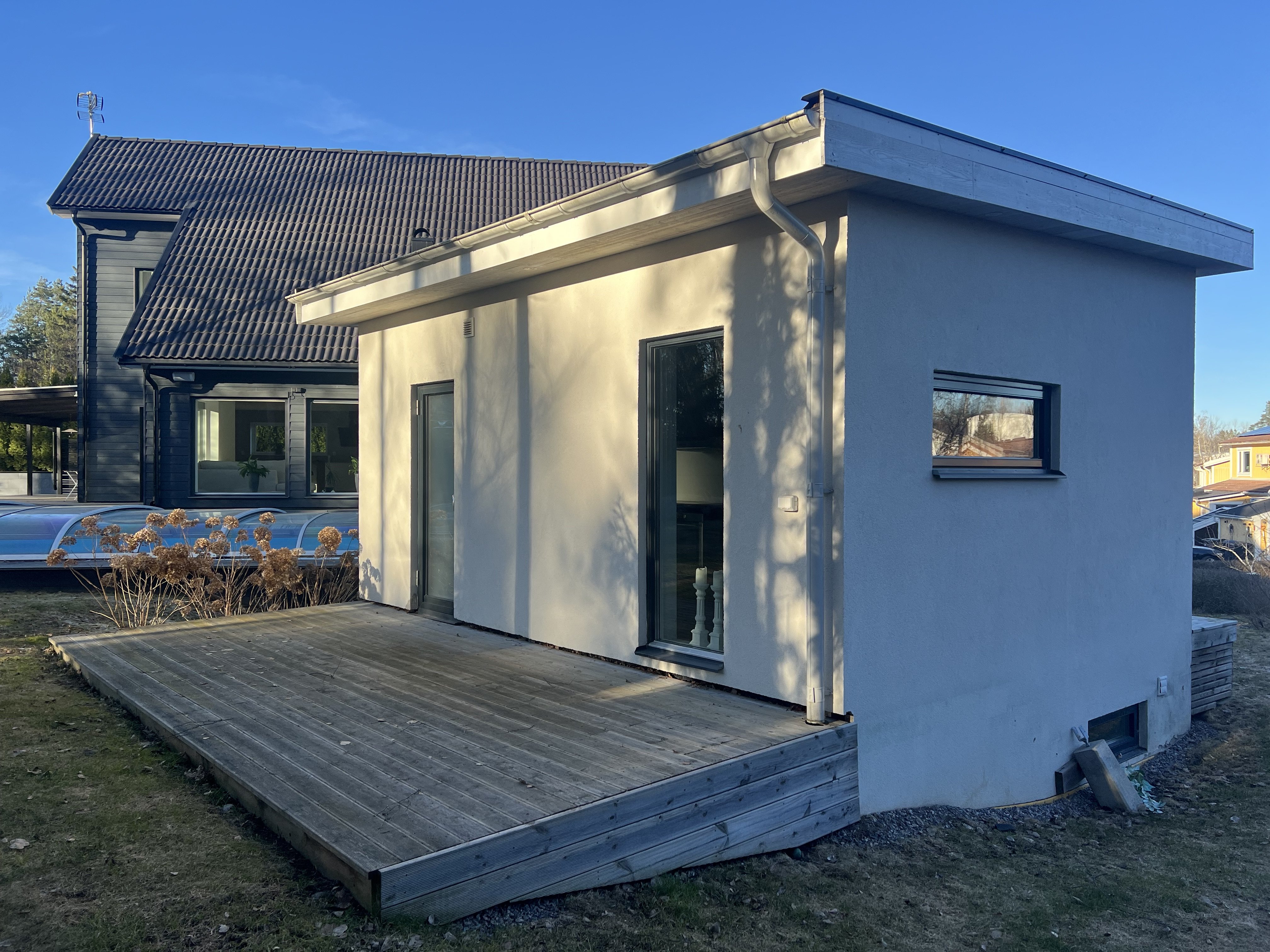Nu hyr vi ut ett nyrenoverat och stilrent attefallshus i två plan på vår tomt i ett lugnt och naturskönt villaområde. Här bor du i ett eget litet hus med egen avskärmad uteplats och en fantastisk skogsbakgrund – på bekvämt avstånd till både kommunikationer och service.